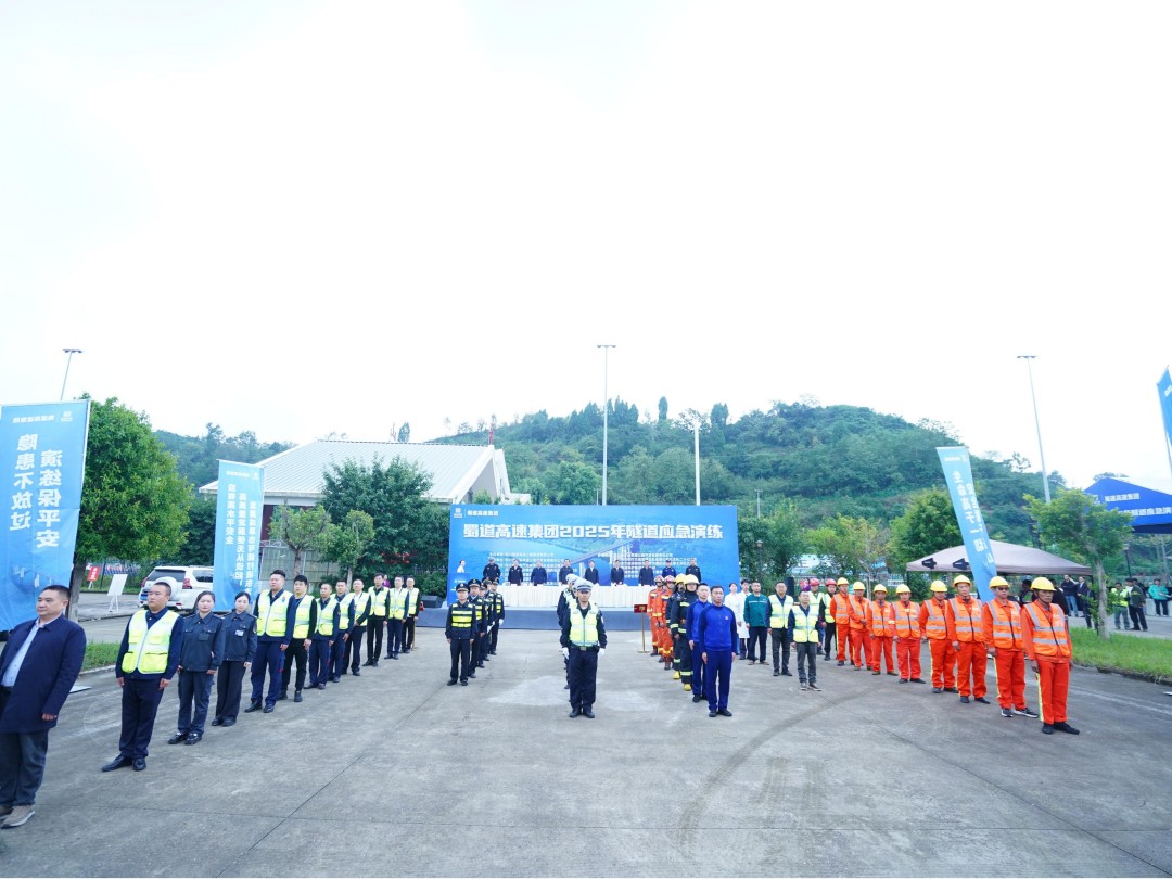 为全面提升高速公路隧道突发事件应急处置能力,检验多单位协同救援机制的实战效能,切实保障司乘人员生命财产安全与道路通行秩序,10月30日,由蜀道高速集团主办、巴广渝公司承办的“2025年隧道应急演练”在营达高速铁山隧道圆满举行。蜀道高速集团党委委员、副总经理徐华出席演练。