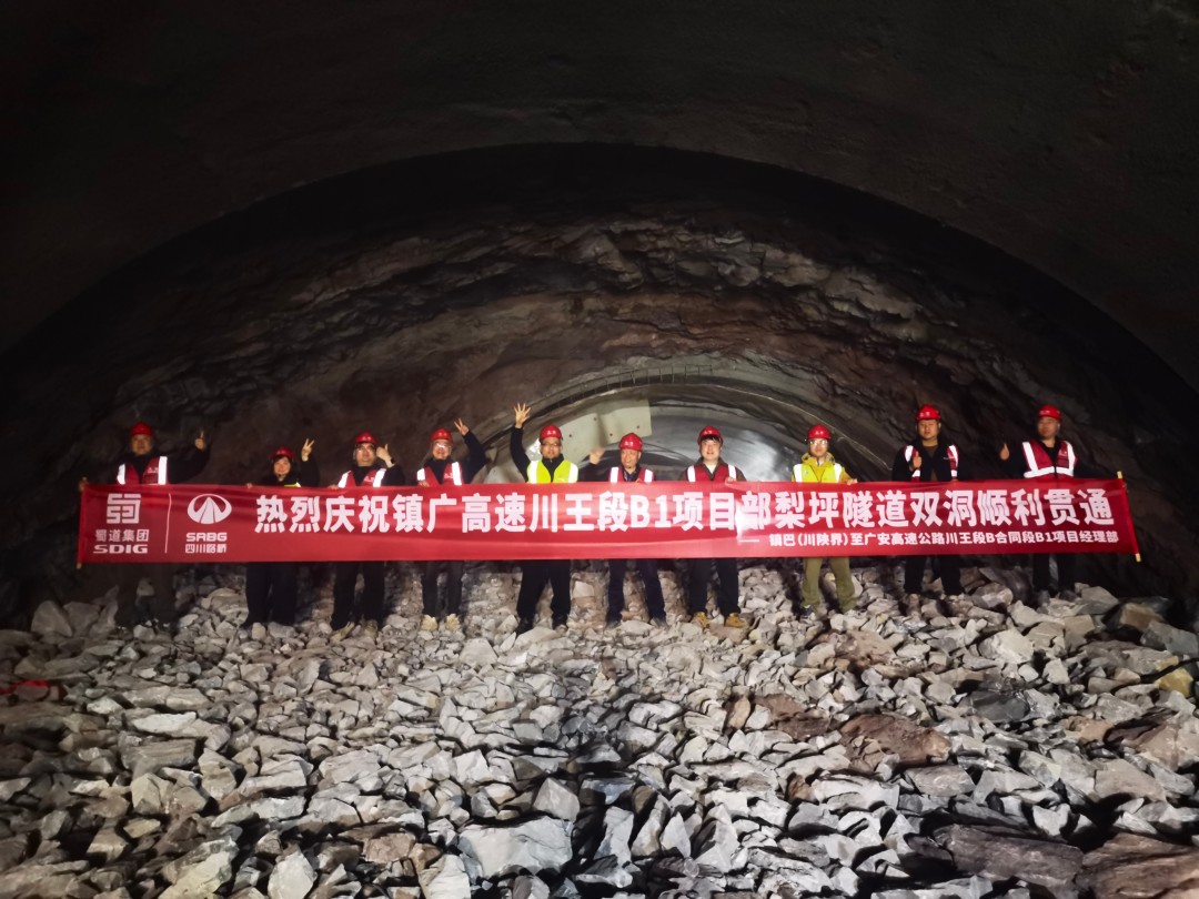 3月24日,镇广高速川王段梨坪隧道左洞贯通,至此,该隧道双洞顺利贯通。