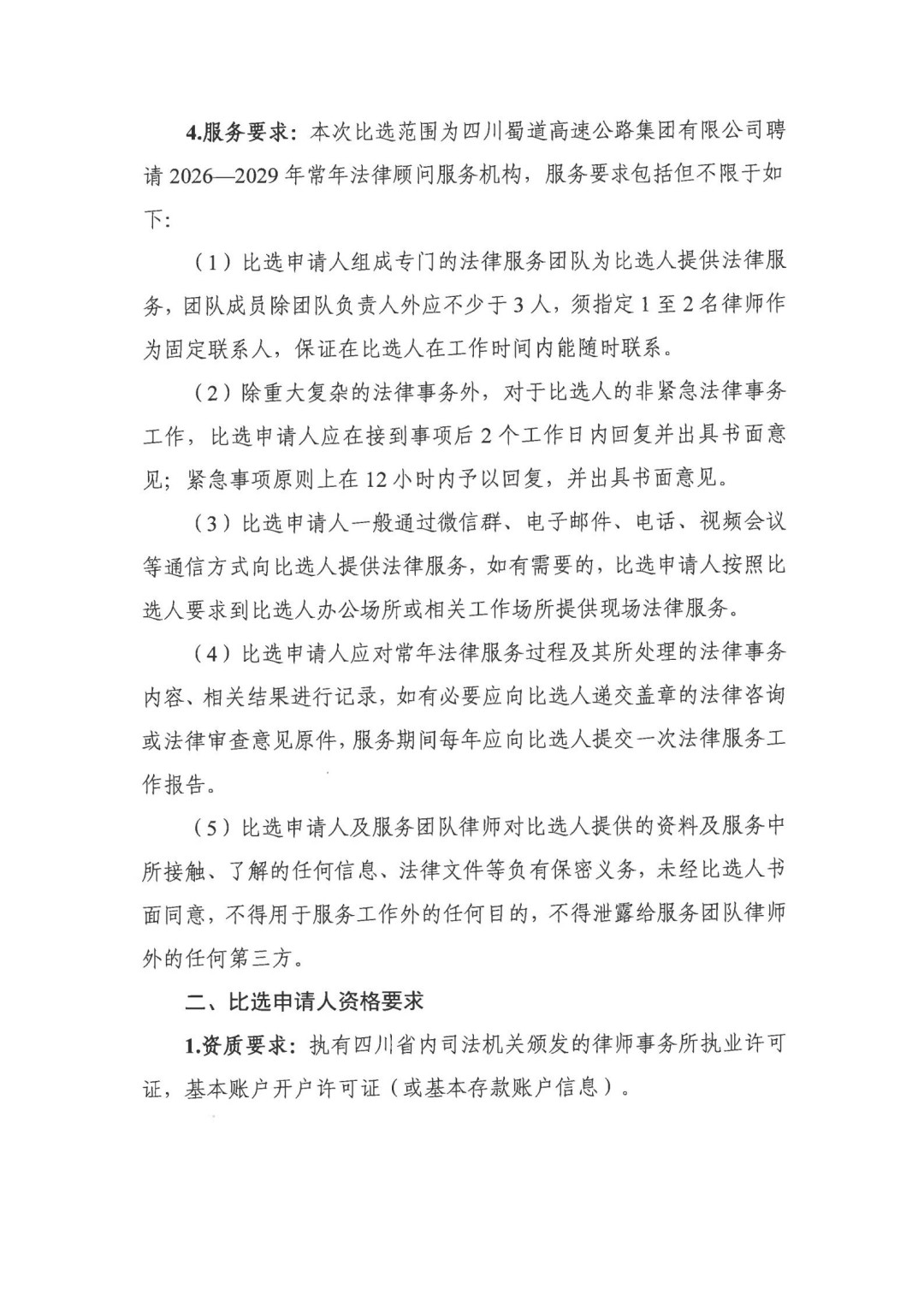 蜀道高速集团常年法律顾问服务机构项目比选文件(2026年).pdf