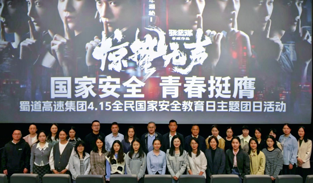 蜀道高速集团团委坚持以文化人、以影育人,组织开展沉浸式警示教育。蜀道高速集团领导班子成员带头示范,与青年职工共同观看国家安全主题影片《惊蛰无声》,在光影叙事中接受思想洗礼、强化底线思维。各所属公司因地制宜开展观影教育,成宜、乐汉公司组织观看保密警示教育片,宁西、攀宁攀大公司集中收看国家安全专题宣传片,以鲜活案例敲响安全警钟,引导青年知敬畏、存戒惧、守底线。