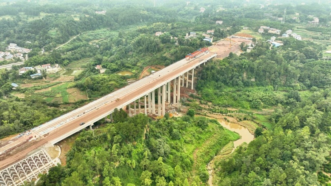 为确保张家溪大桥的顺利架设,乐资铜成都分公司围绕T梁预制与架设等环节多次组织安全技术交底,并制定专项吊装运输方案及应急预案,确保了架设作业安全可控。同时通过数字化手段复核施工条件,加大资源投入,快速完成运梁通道建设。面对雨季挑战,科学制定“雨晴双案”,增设防雨设施,优化作业时间,组织党员先锋队坚守施工一线,全力保障大桥按期贯通。