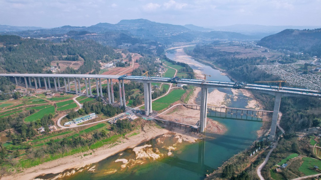 镇广高速C2项目主线全长6.8公里,含桥梁7座,隧道2座。其中,东山通江河特大桥位于巴中市通江县广纳镇,全长1143.5米,横跨通江河,单幅纵桥向分69个节段,建设过程中面临地质复杂、工序繁杂、跨河作业多、高空施工集中、冬季施工等多重挑战。