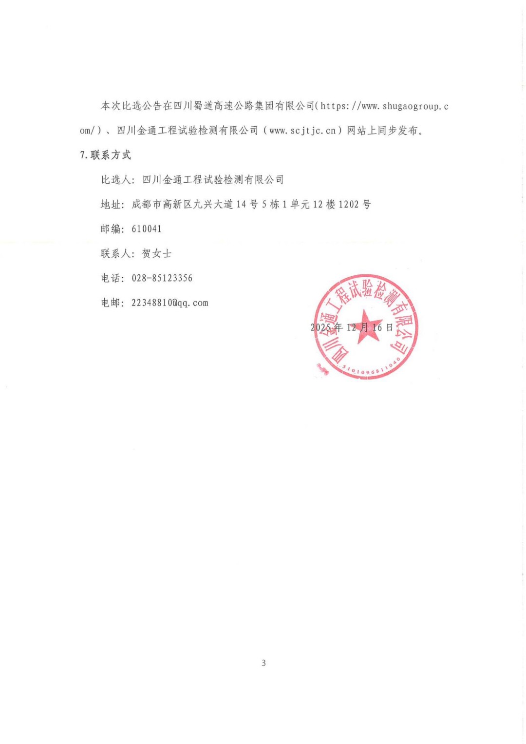 金通检测公司2025年运营高速公路定期检查激光弯沉检测技术协作项目比选公告