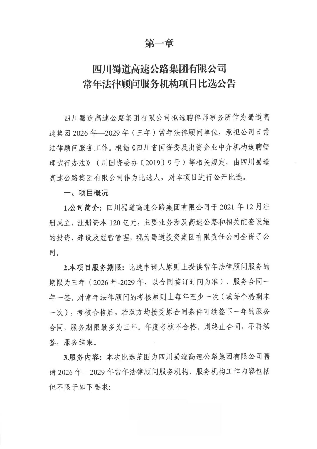 蜀道高速集团常年法律顾问服务机构项目比选文件(2026年).pdf